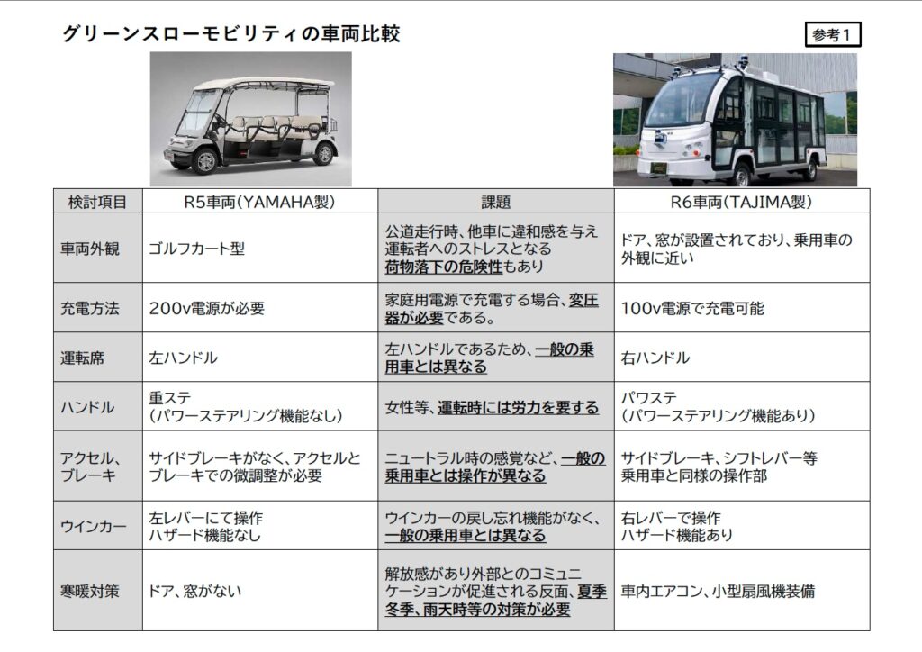 グリスロ車両の特性(環境配慮、低速)と、コストパフォーマンスや実用性(市販のワゴン車等との比較)を天秤にかけ、地域の実情に最も適した手段は何か、という根本的な議論も必要とされています。